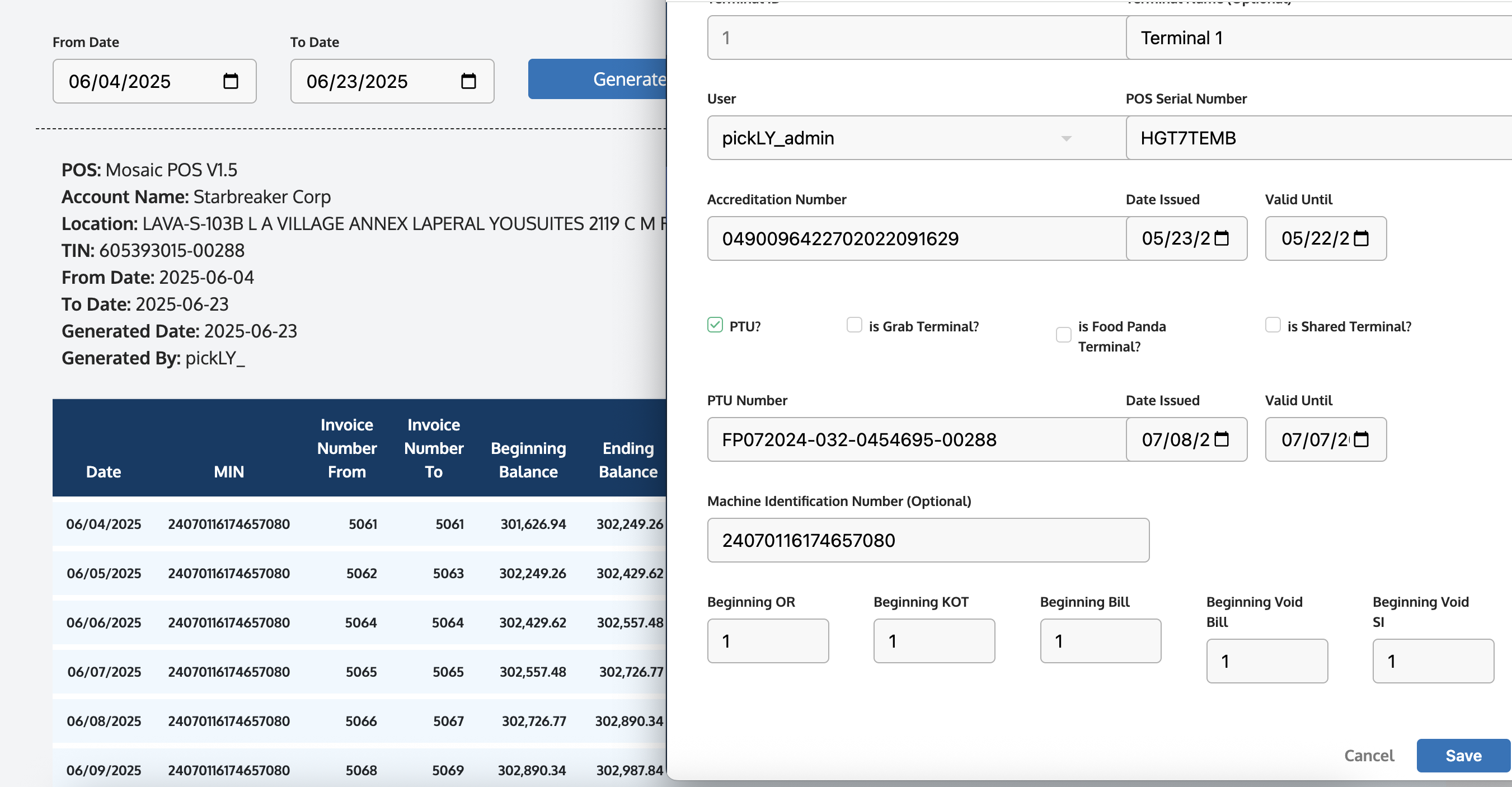 | Objective | Allows the Super Admin, Enterprise, Brand, Store Admin and Manager user access to see the MIN on the BIR Sales Summary as they also need this information for BIR Reporting |