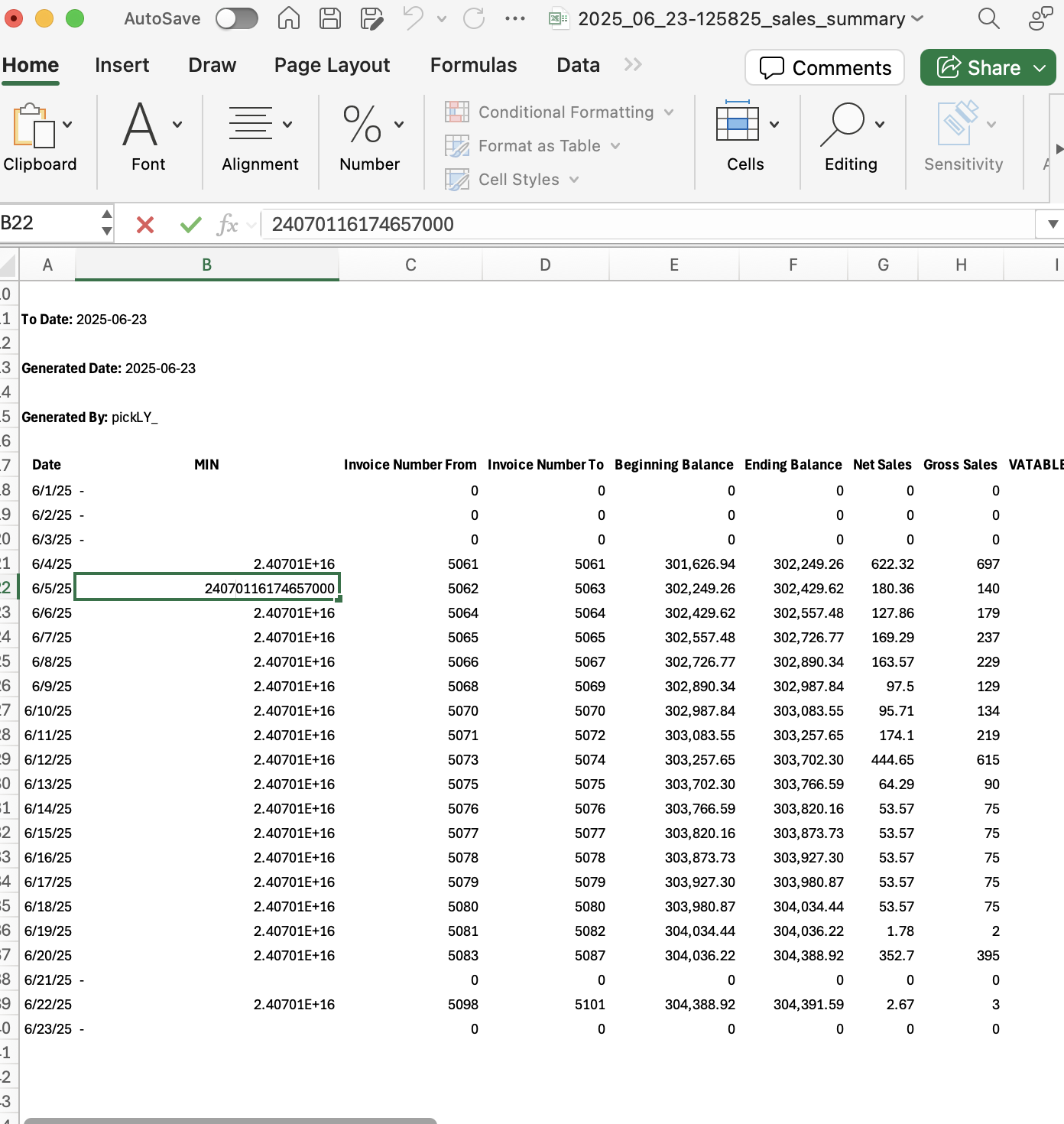 BIR Sales Summary - Show the Machine Identification Number (MIN) column