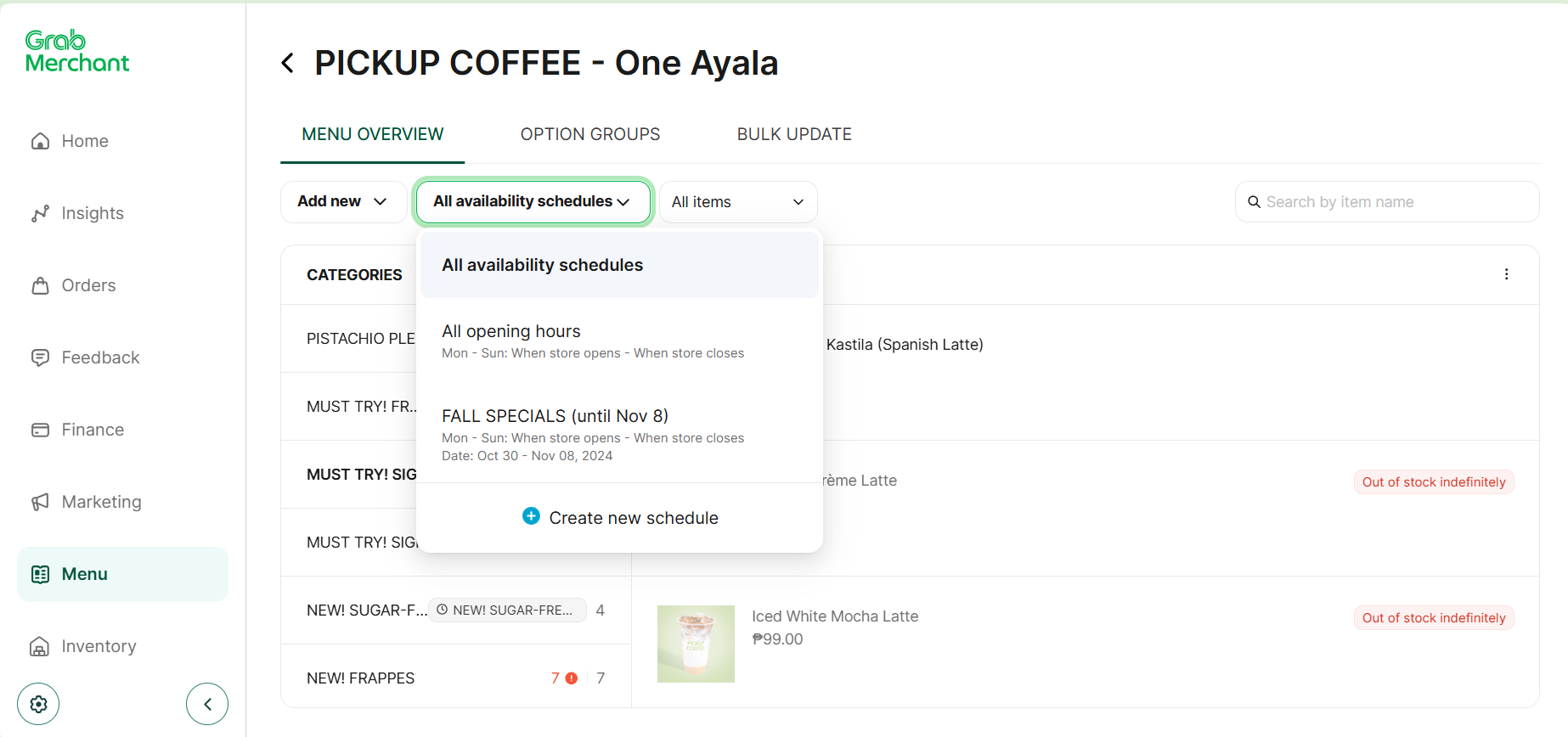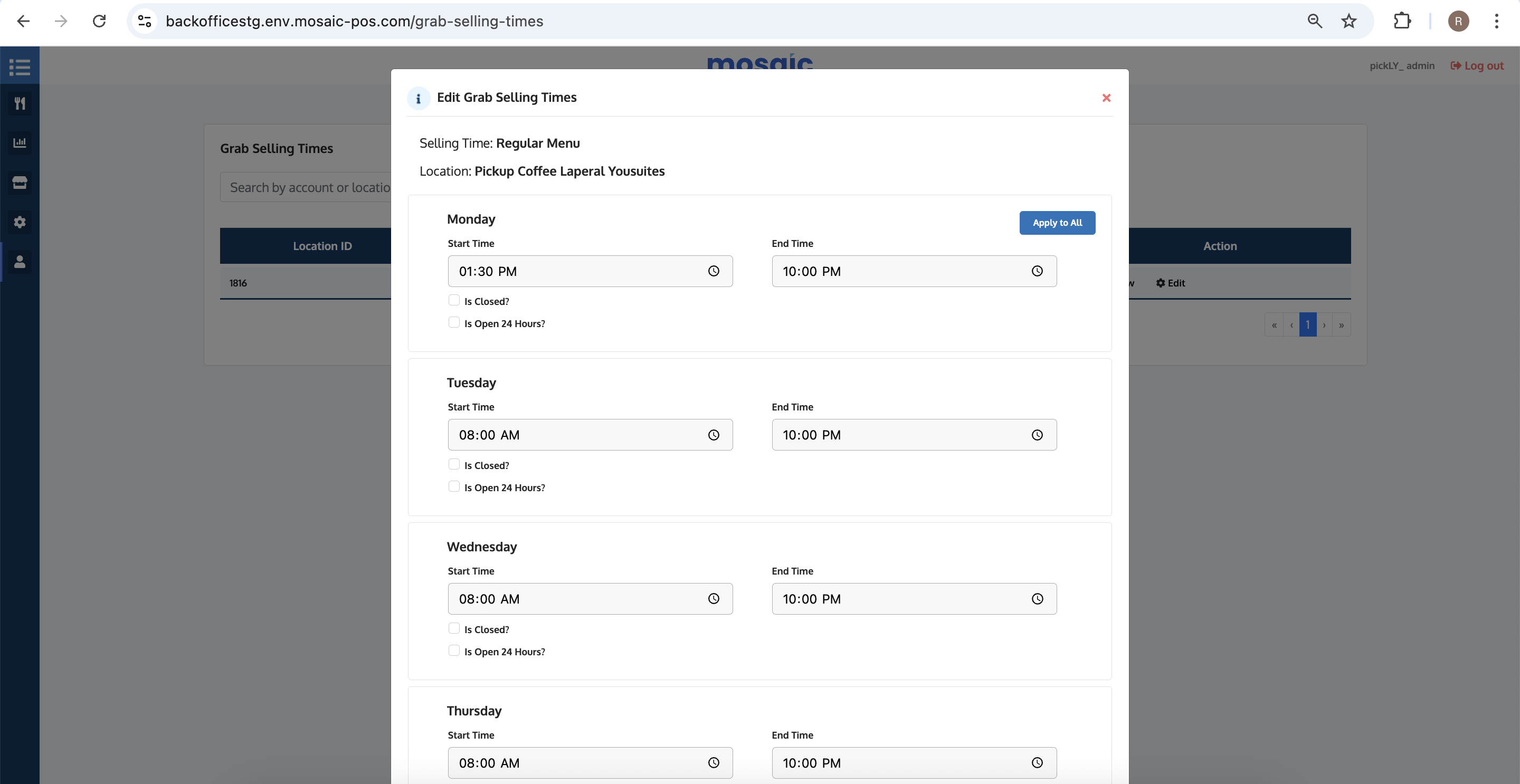 Menu Selling Time can now be accessed through Back Office so that the client can update and sync it to their Grab Store.