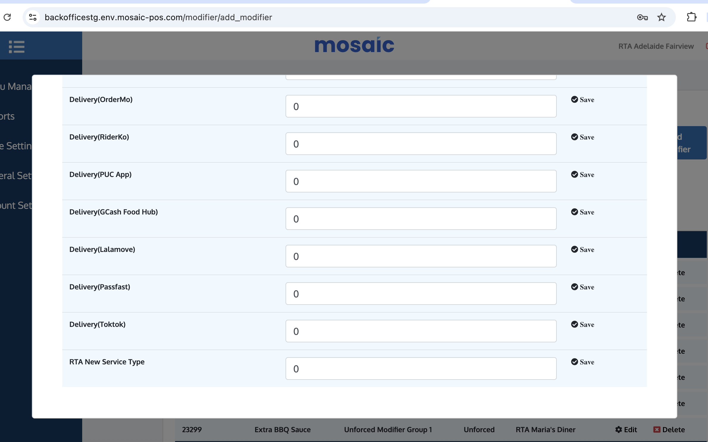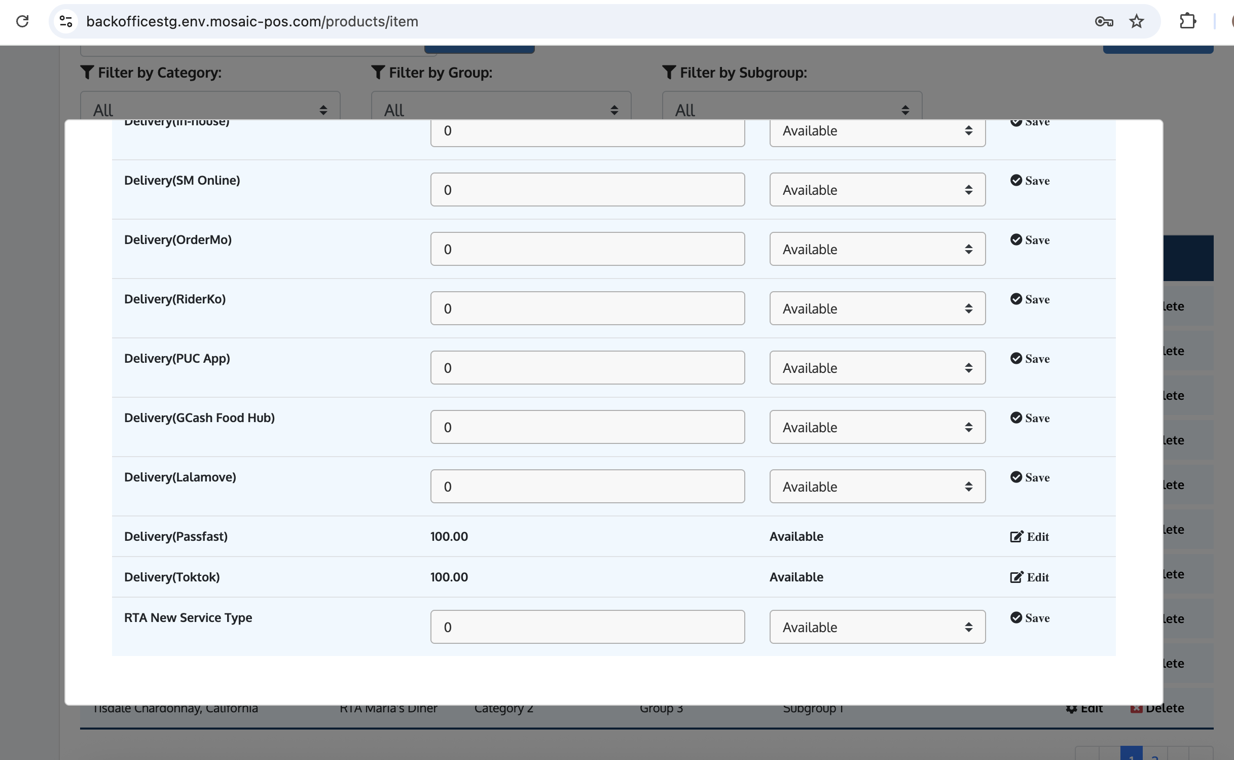 | "Passfast" and "TokTok" are not available on POS and Back Office | "Passfast" and "TokTok" are seen under Delivery Service Type on POS and Pricing table on Back Office