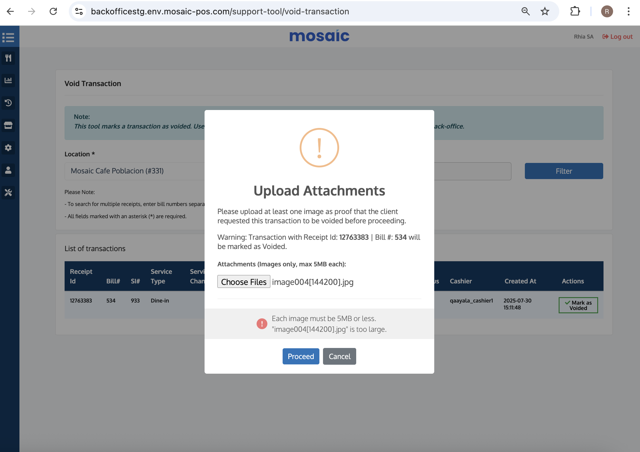 | Objective | Allows the Support Team (using Super Admin user access) to Void Transaction on the Back Office so that we can fix "voided but still appears on DSR" issue especially for past POS dates |